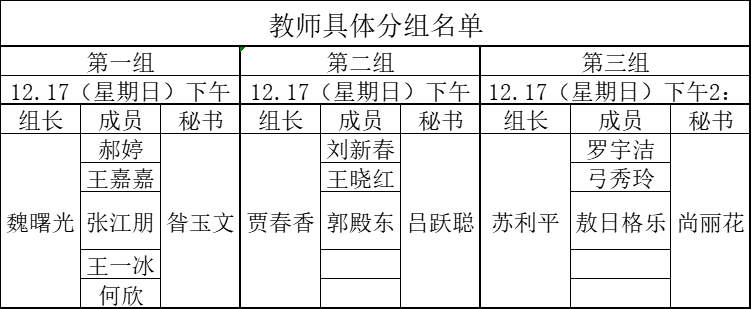 一、时间:2023年12月17日,具体见表格中安排。
