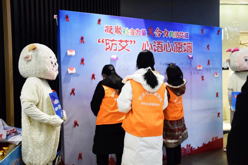 昆区卫健委负责工作人员宣布活动开始,并向参与活动的志愿者及群众宣传防艾抗艾的相关知识。紧接着,志愿者们郑重宣誓要以饱满热情投身防艾抗艾志愿活动当中。现场还进行了艾滋病相关知识问答,在互动中,志愿者们对艾滋病有了进一步了解,也增强了志愿者们的自我保护意识。最后,志愿者们还在“防艾”心语心愿墙上留言分享感受,表达关爱。