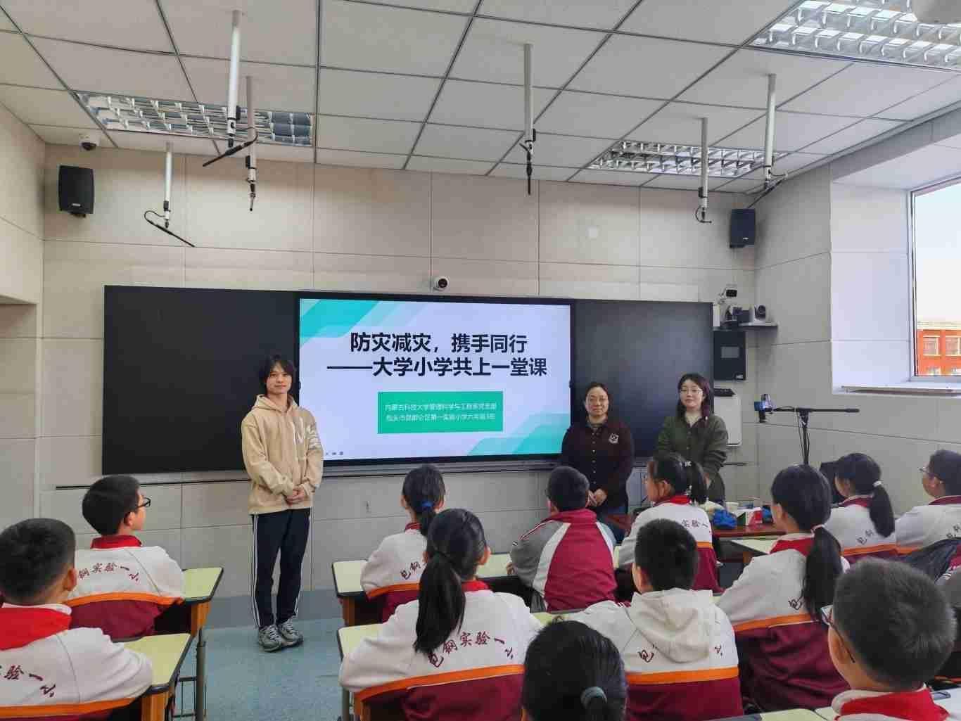 2024年12月9日下午,yL23411永利官网登录管理科学与工程系党支部联合包头市昆都仑区第一实验小学六年级三班在包头市第一实验小学录播教室开展了一场名为“防灾减灾,携手同行,大学小学共上一堂课”科普宣讲活动。